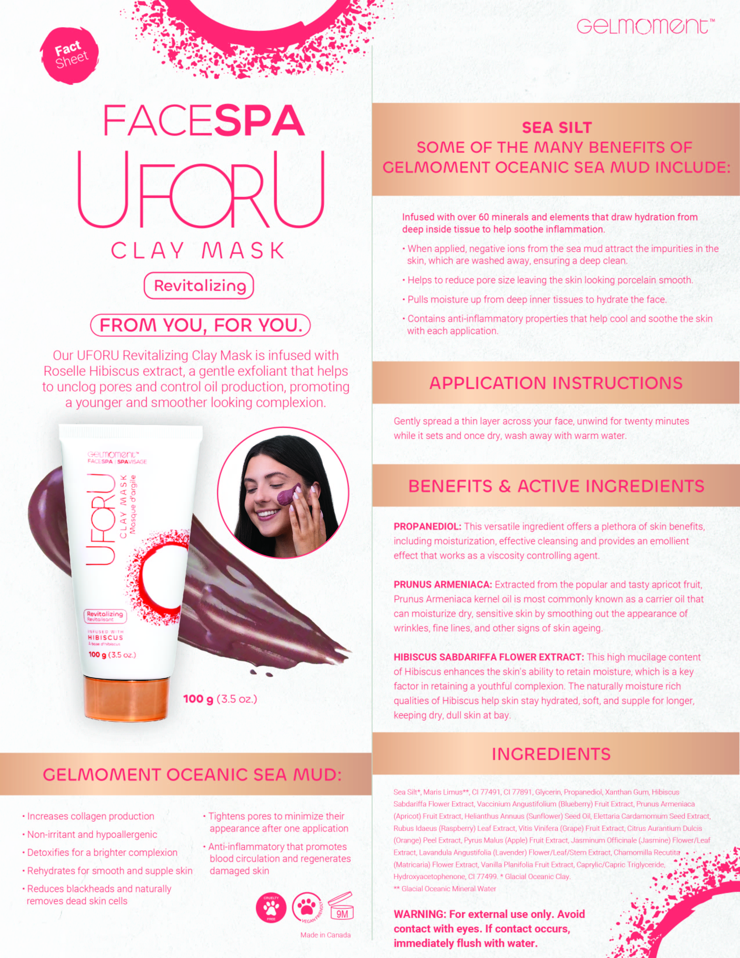 UFORU Revitalizing Clay Mask features Hibiscus extract, a gentle exfoliant that helps unclog pores and control oil production, promoting a younger and smoother looking complexion.
